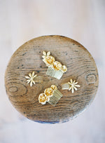 Adorable Art Deco inspired sunburst gold or silver designs bridal hair combs are studded with Swarovski crystal and affixed to small metal combs. These combs are beautiful worn scattered throughout an up-do. Wear one, two or more to accent your look.