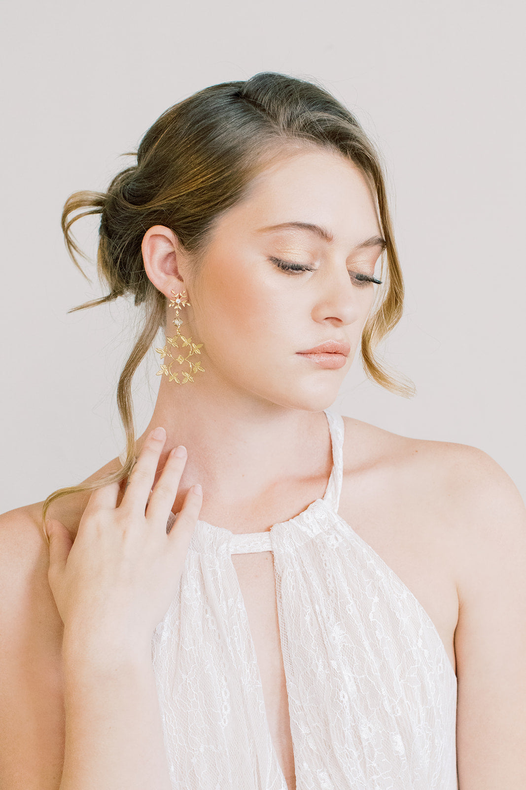Gorgeous golden brass laurel vines are accented with small golden Swarovski crystals. These pieces are lightweight and hung from gold plated laurel clusters on sterling silver posts. Gorgeous pieces for a bride, bridal party, or any special occasion.